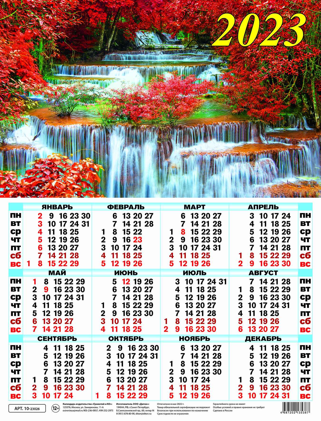 Календарь-плакат 2023 А2 Водопад /КРАТНО 5ШТ/10-23026