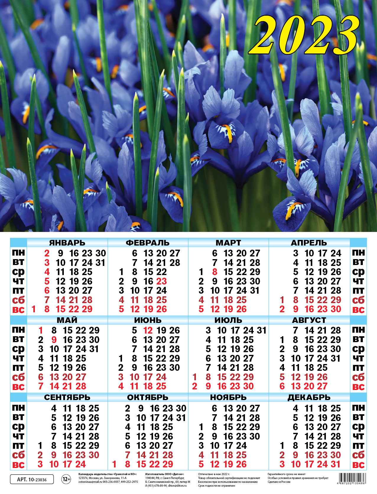 Календарь-плакат 2023 А2 Ирисы 10-23036