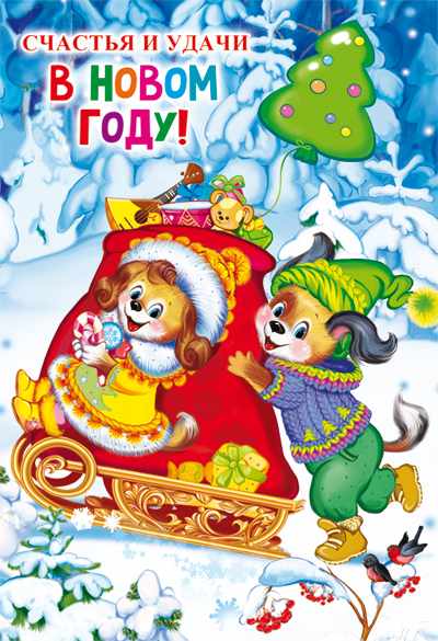 Открытка среднего формата НТ-10916 Счастья и удачи в Новом году! Текст (блестки в лаке, конгревное
