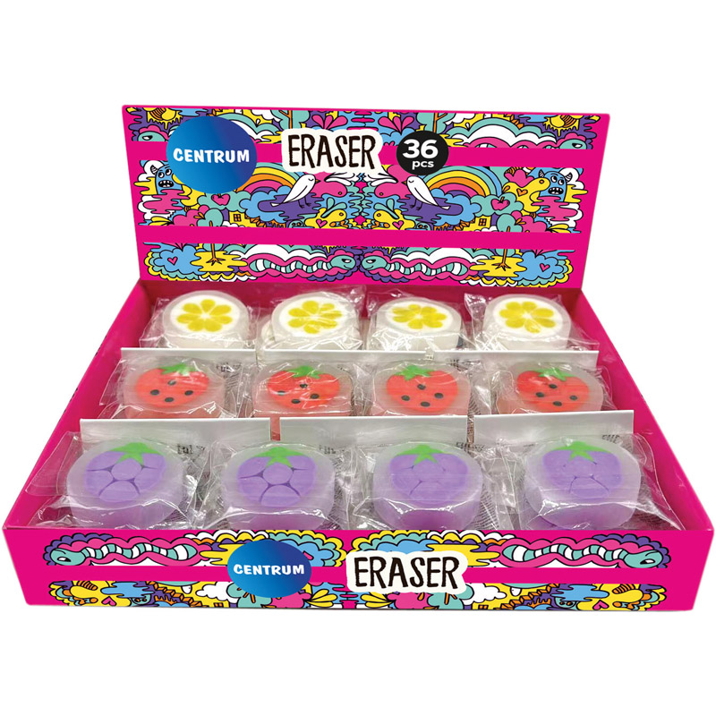 Ластик Centrum 35*35*10мм Фрукты в асс в индив упаковке 89934