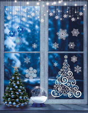 Наклейки на окна А3 Н-15354 Елочка Ажурная (пластизоль, многоразовые, видны с обеих сторон)