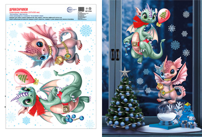 Наклейки на окна НМТ Дракон мальчик и девочка видны с обеих сторон 15345