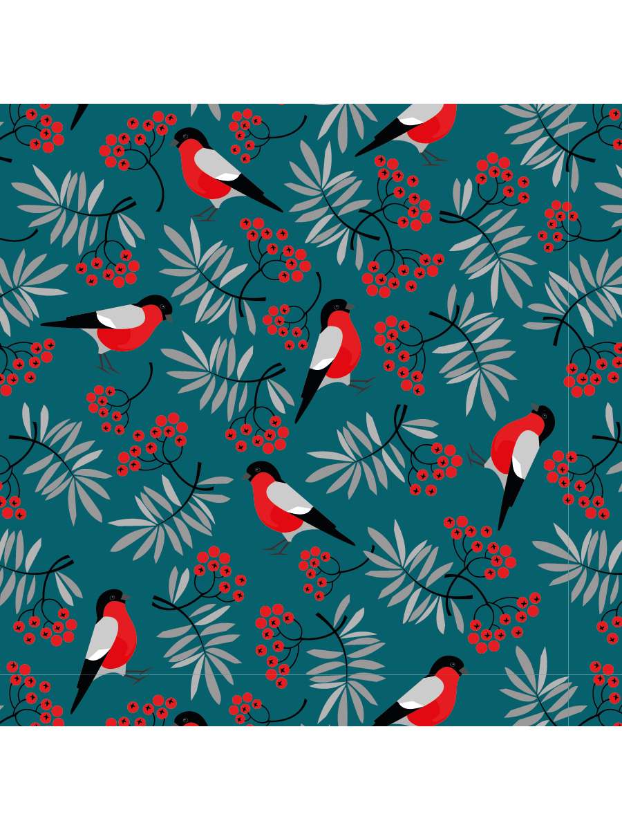 Упаковочная бумага 70*100см Снегири и веточки /КРАТНО 2/ УБ-4319
