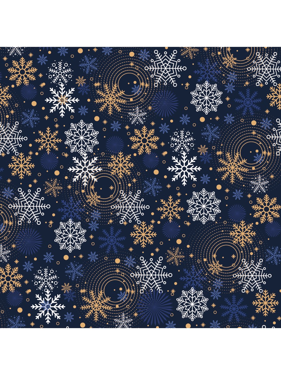 Упаковочная бумага 70х100см Новогодние снежинки на синем /КРАТНО 2/ УБ-4332