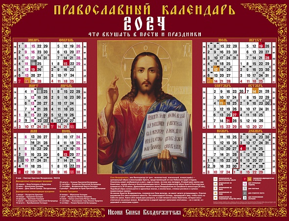 Календарь-плакат 2024 А2 Спас Вседержитель- С правосл. постами и праздниками бум. мелован с укрупненной сеткой 10117