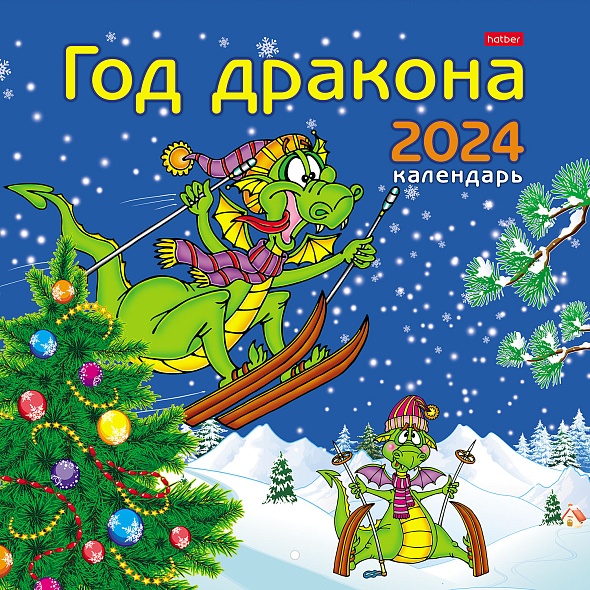 Календарь настен перекидной 2024 30х30см -Год Дракона- бум. мелован. на скобе в инд.упак с европодвесом 01365