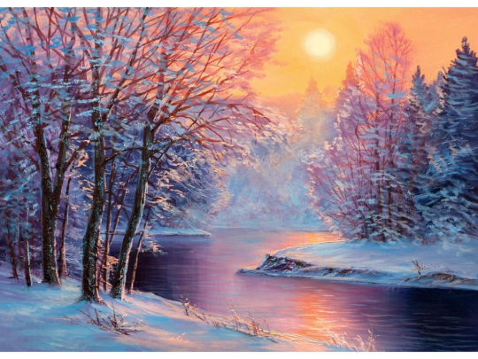 Холст с красками 30х40 по номерам в коробке 19 цв. Снежный пейзаж Арт. Х-5963
