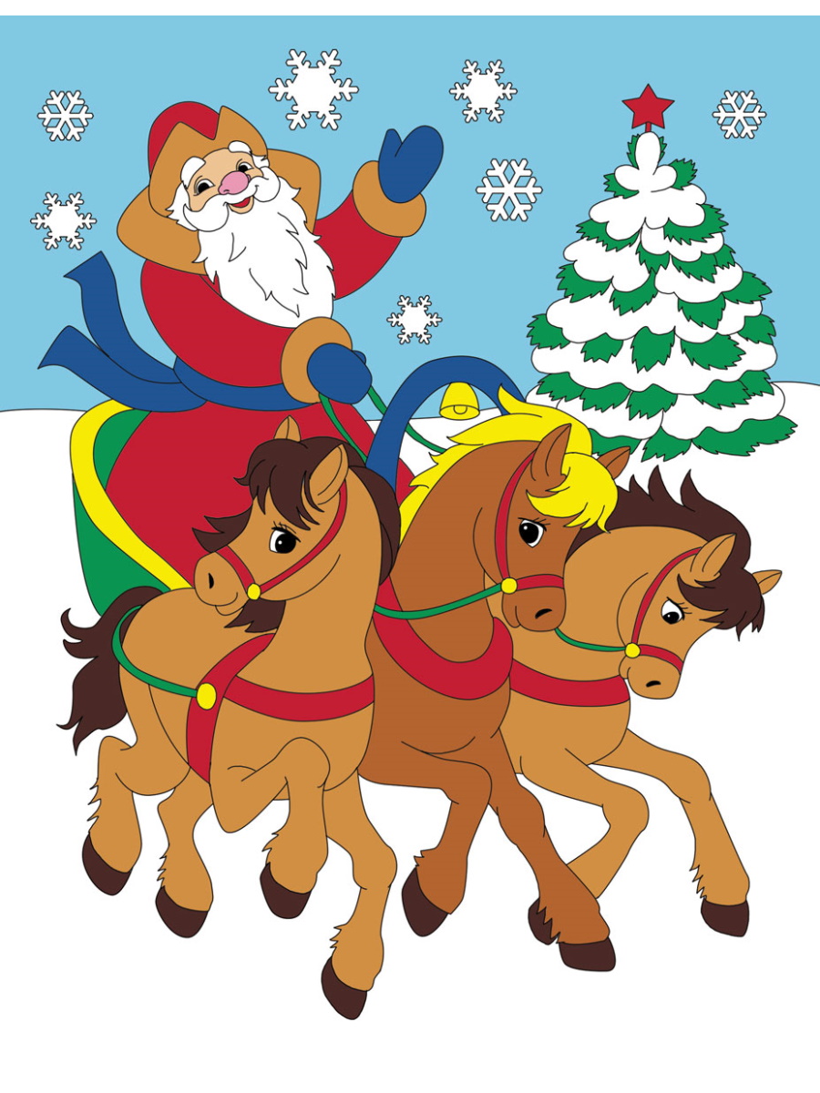 Холст с красками 20х25 по номерам Дед Мороз и тройка лошадей Арт. ХК-6054