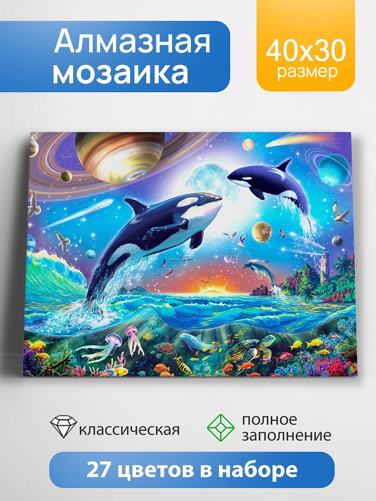Алмазная мозаика (клас.) 30х40 см, с подр., с полн. заполн. (27цв) Космический океан НД-8595