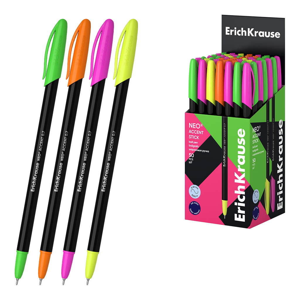 Классическая одноразовая шариковая ручка Stick с утонченным игольчатым типом пишущего узла Fine tip. Ручка имеет непрозрачный круглый корпус черного цвета и вентилируемый колпачок яркого неонового цвета. 5-канальный пишущий узел с диаметром шарика 0.7 мм в сочетании с чернилами пониженной вязкости обеспечивает точное и быстрое письмо без усилий. Длина непрерывной линии составляет 1000 м при толщине 0.26 мм, что является высоким показателем в своей категории. Модель Neo® Accent имеет элегантную форму и продолжает модельный ряд Neo в новой коллекции.