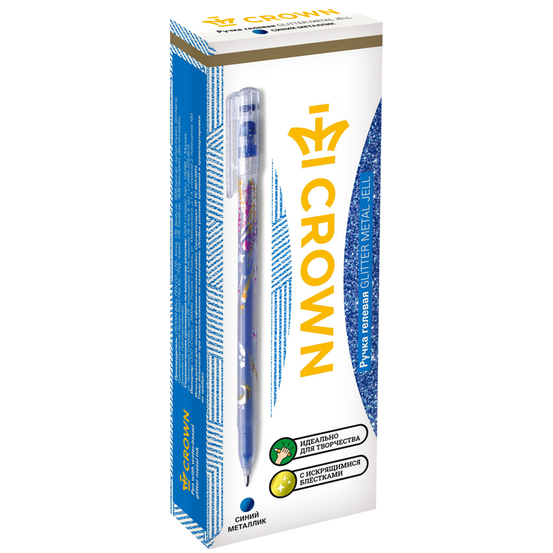Ручка гел син 1,0мм Crown «Glitter Metal Jell» с блестками 3783