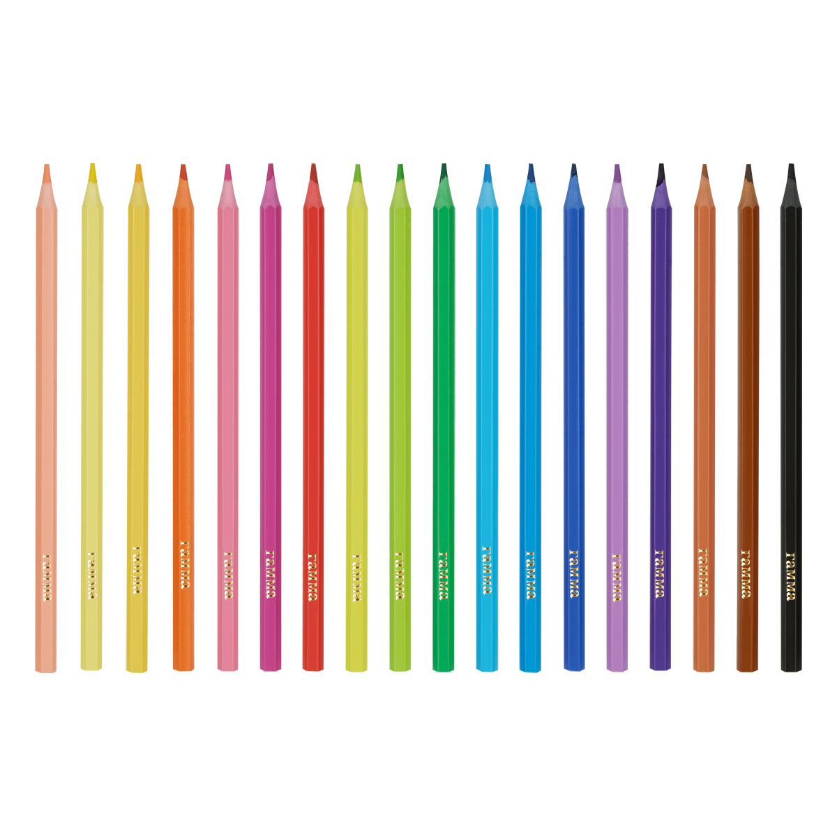 Пластиковые карандаши ГАММА серии «Мультики» изготовлены из высококачественного пластика. В наборе 18 цветов: желтый, красный, зеленый темный, светло-голубой, темно-коричневый, черный, оранжевый, розовый, зеленый, синий, фиолетовый, фиалковый, желто-зеленый, желтый темный, телесный, голубой, кармин розовый, коричневый. Диаметр грифеля — 3 мм. Проклеенный ударопрочный грифель не крошится во время заточки и не ломается даже после падения. Корпус карандаша диаметром 7 мм и длиной 174 мм изготовлен из пластика. Упаковка – пластиковая коробка с европодвесом.