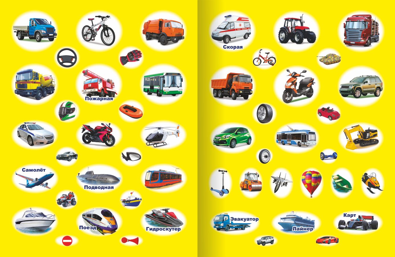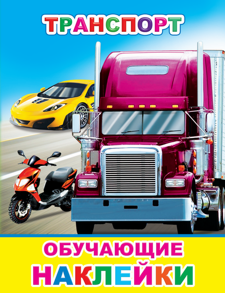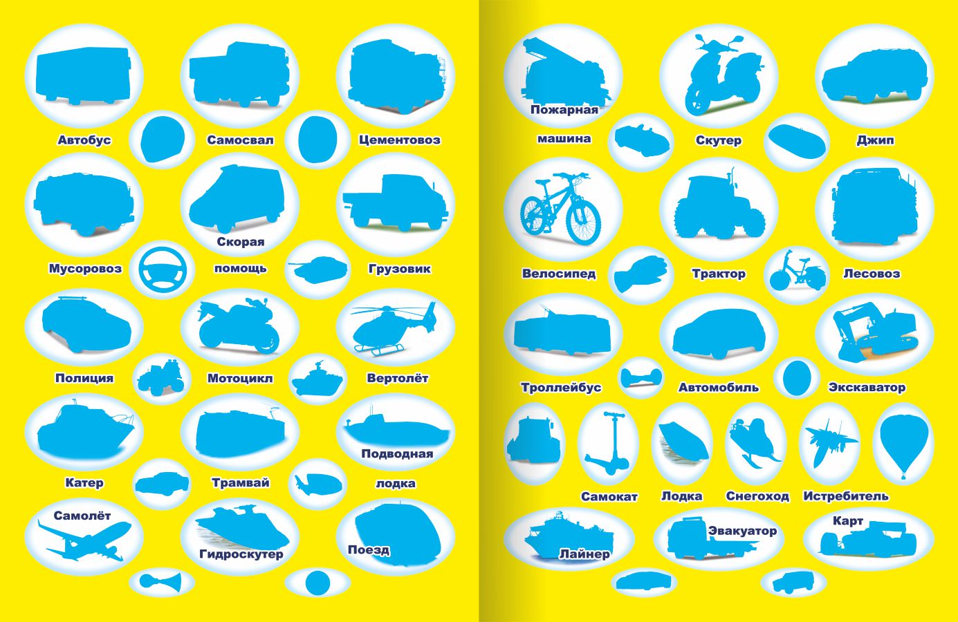Книжка с лакированными страницами, размером 20х26 см. 4 страницы, более 50 наклеек с изображениями транспортных средств. Наклейки нужно приклеить на тени на внутренней стороне обложки, подобрав по силуэту или по названию. Наклейки можно использовать самостоятельно как декоративные элементы.