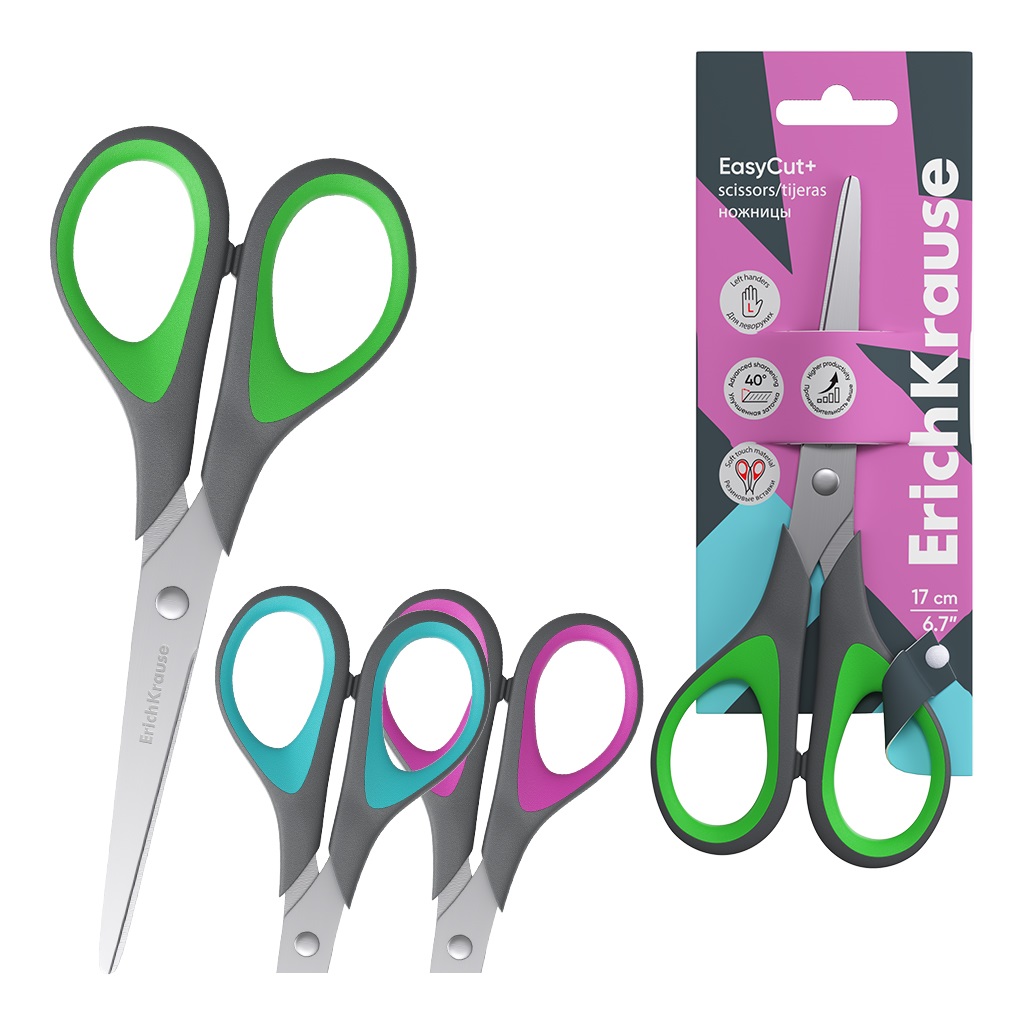 Ножницы 17см для левшей ErichKrause EasyCut+ в асс 60840