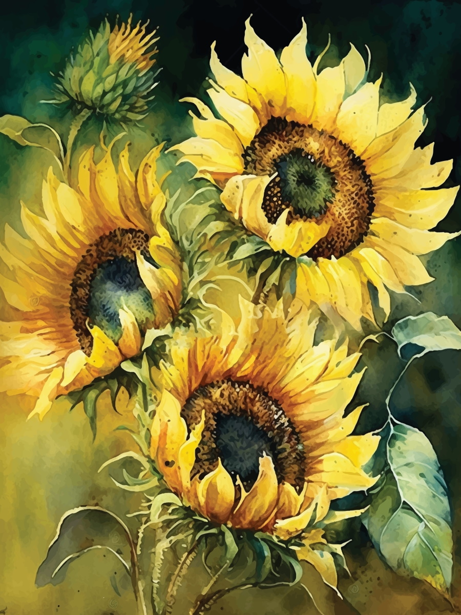 Алмазная мозаика 30х40 (блест.) с подр., с полн. заполн. (30 цв.) Большие подсолнухи (Арт. АЛМ-0033)