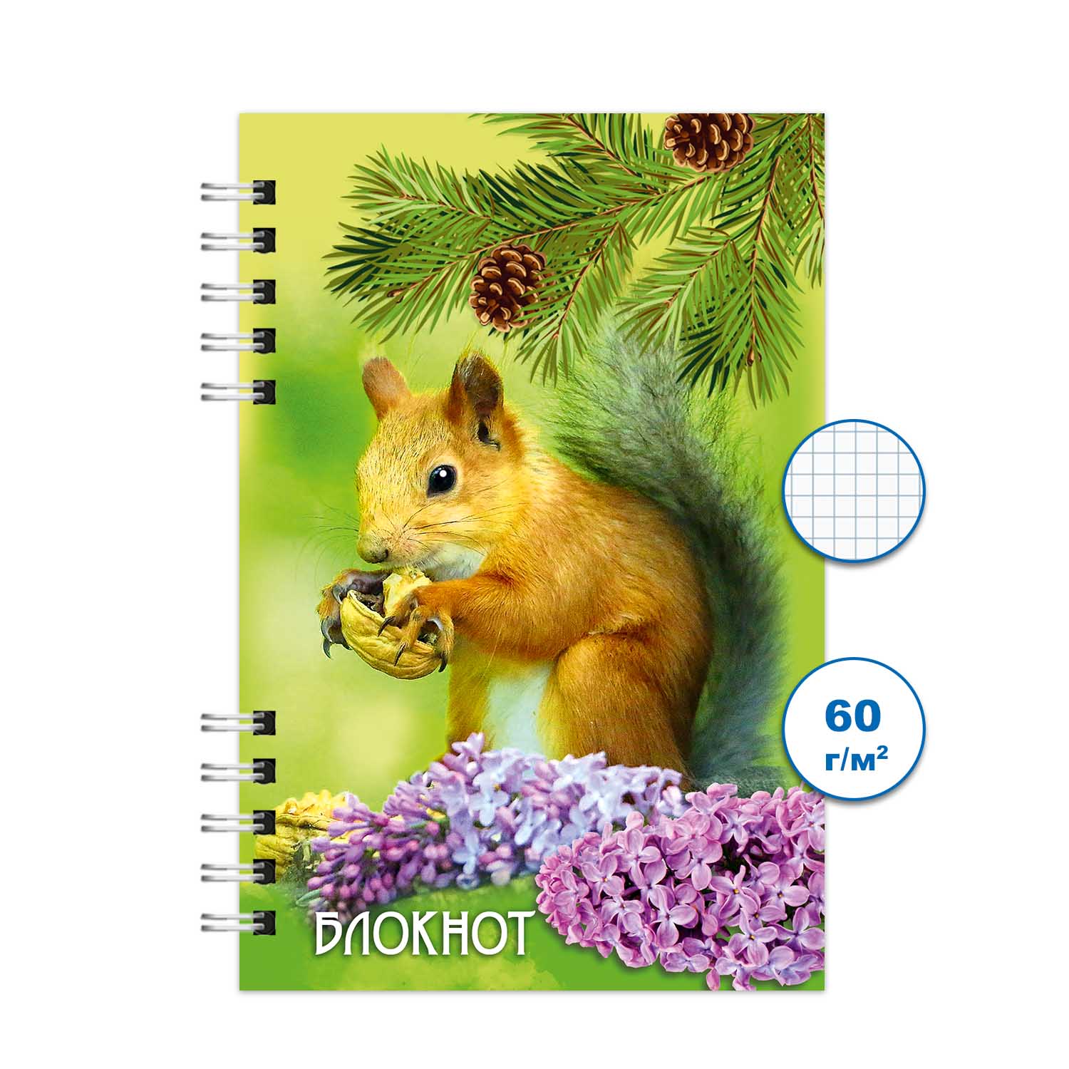 Блокнот А6 120л клетка на гребне Животный мир 2 0155