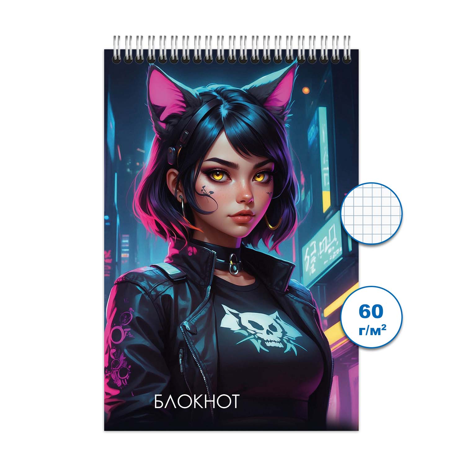 Блокнот А6 48л клетка на гребне Неко 1 4993