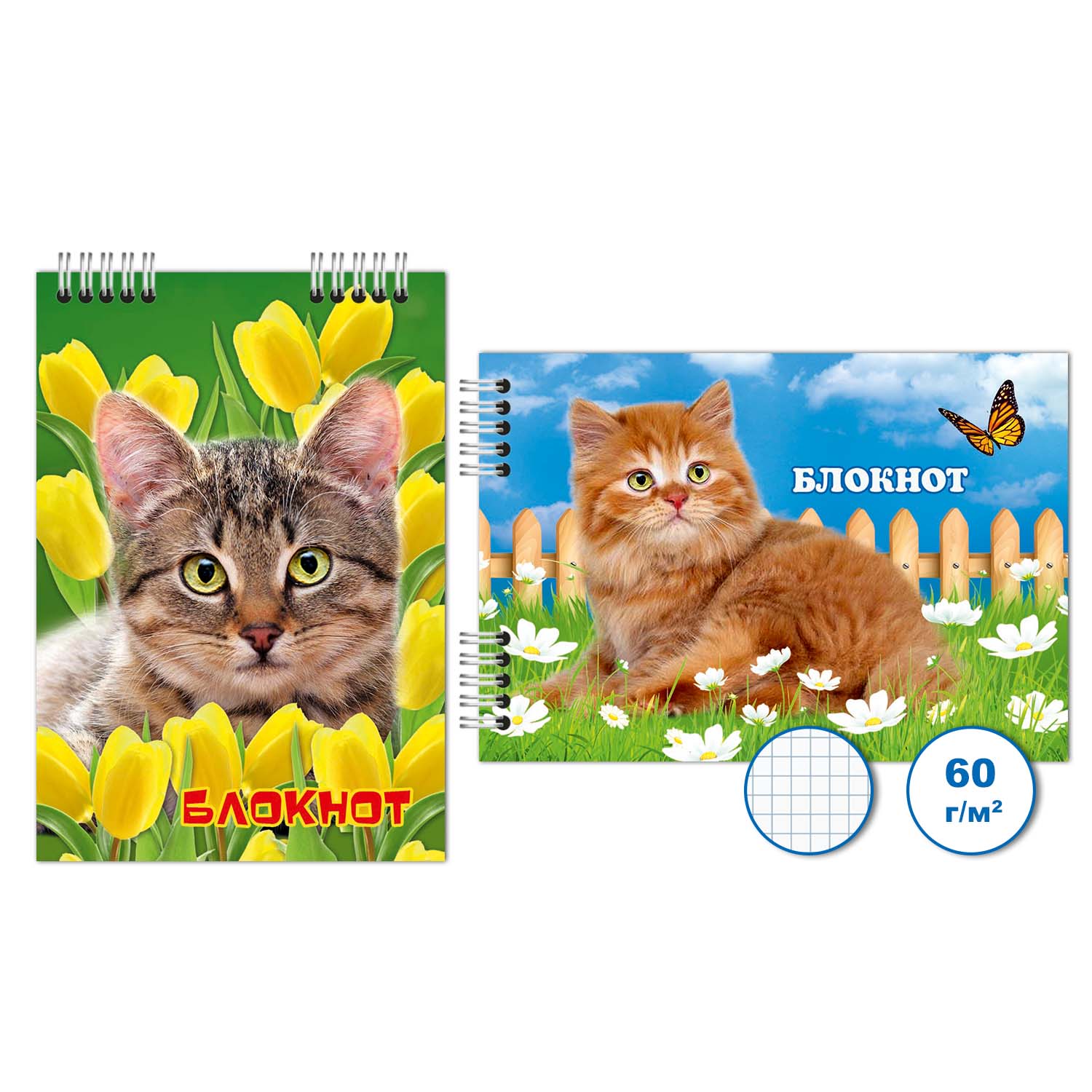 Блокнот А7 24л клетка на гребне Кошки 0104