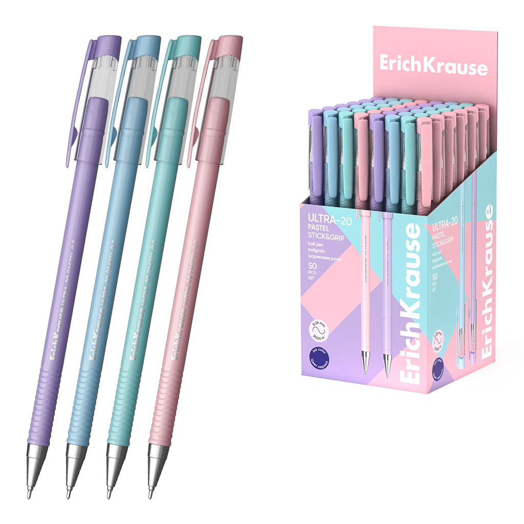 Ручка шар син 0,7мм ErichKrause ULTRA-20 Stick Pastel Super Glide Technology 63111