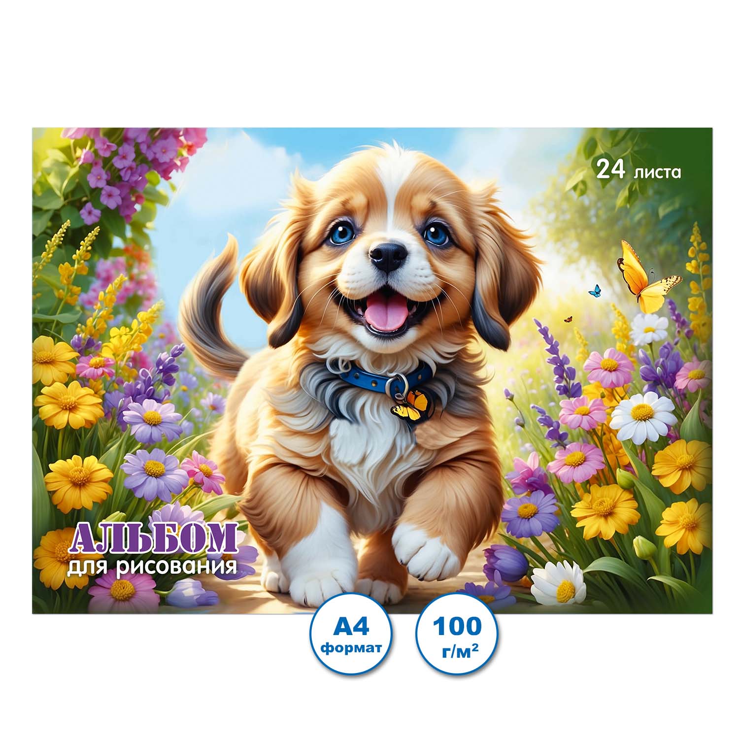 Альбом для рисования 24л Щенята1 скрепка 7100