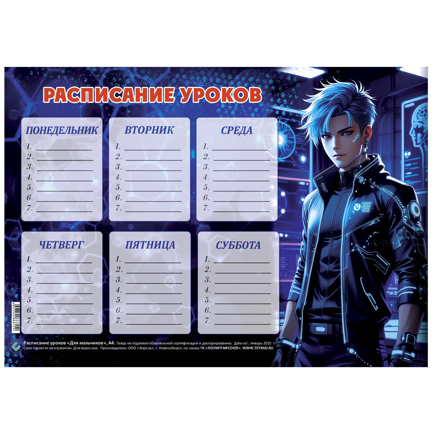 Расписание уроков 20*29 Для мальчиков 8152