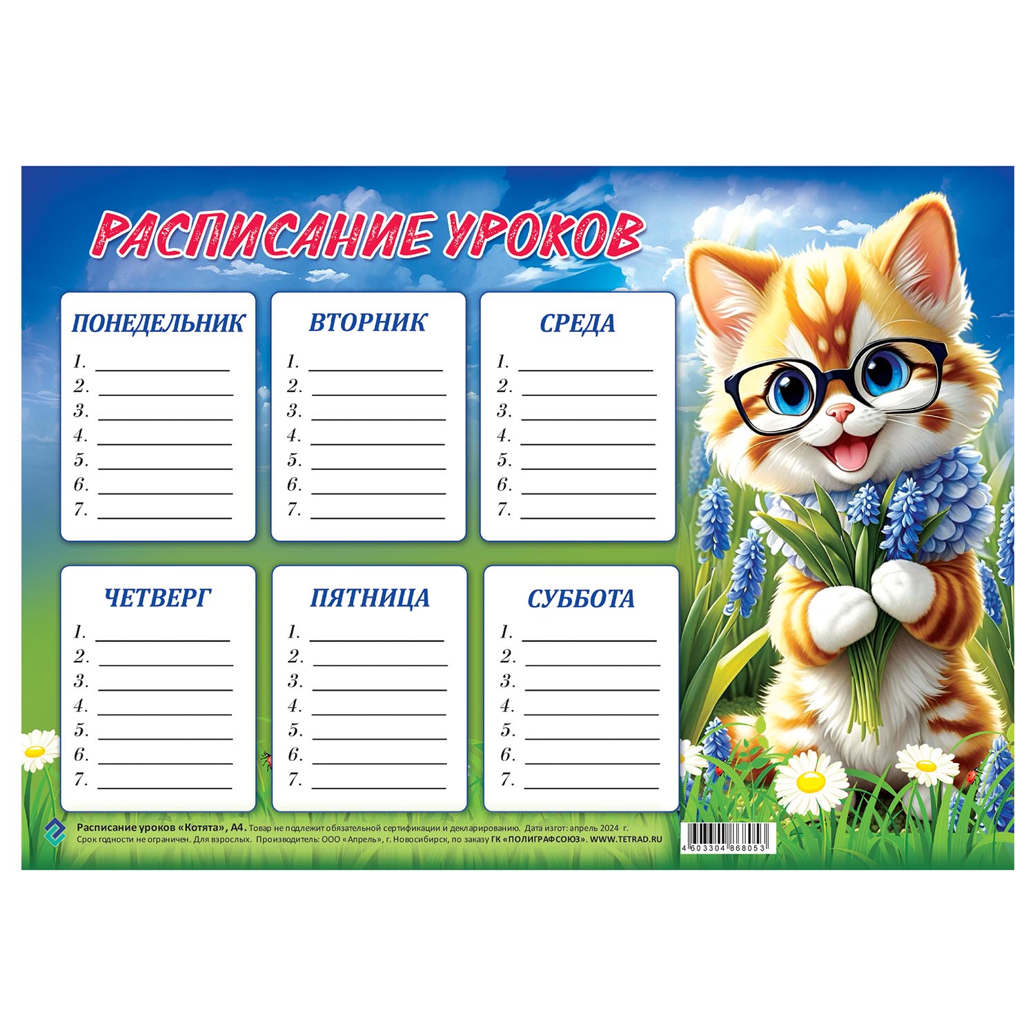 Расписание уроков 20*29 Котята