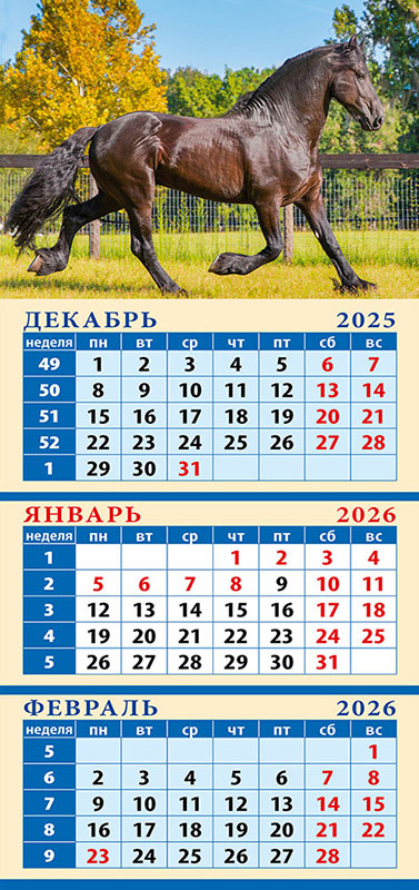 Календарь квартальный 2026 на магните 110*245мм арт.34617 «Год лошади.Красота и сила»