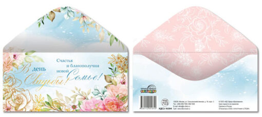Конверт для денег на склейке КДС2-16394 В День Свадьбы! (золотая фольга)