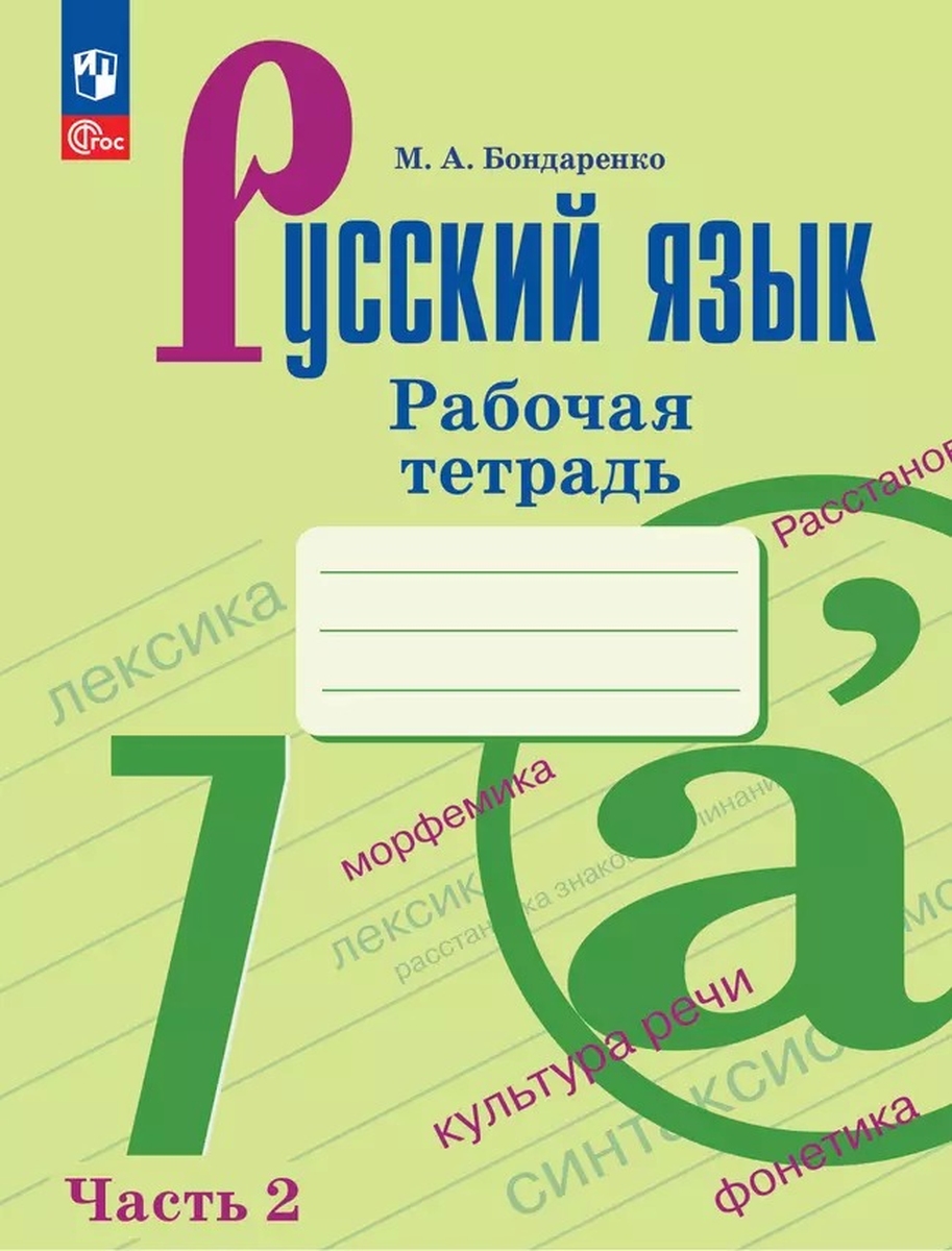 Бондаренко Русский язык. 7 класс. (Приложение 1) Рабочая тетрадь. Часть 2 (к учебнику Баранова)