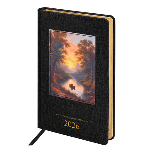 Ежедневник датированный 2026 А5 138х213мм BRAUBERG ArtGallery под кожу нашивка черный 117405
