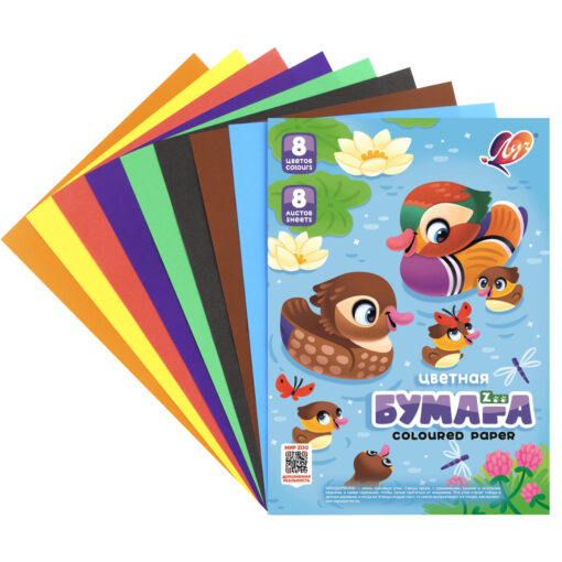Цветная бумага 8цв 8л А4 «Zoo» односторонняя немелованная Утка 2277-08