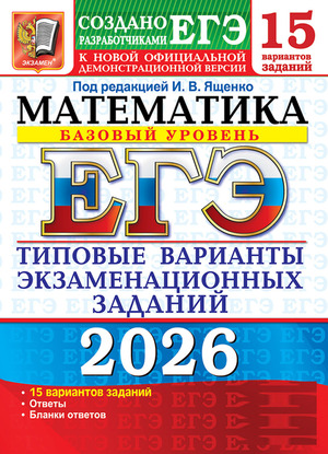 ЕГЭ 2026. 15 ТВЭЗ. МАТЕМАТИКА. БАЗОВЫЙ УРОВЕНЬ. 15 ВАРИАНТОВ. ТИПОВЫЕ ВАРИАНТЫ ЭКЗАМЕНАЦИОННЫХ ЗАДАН