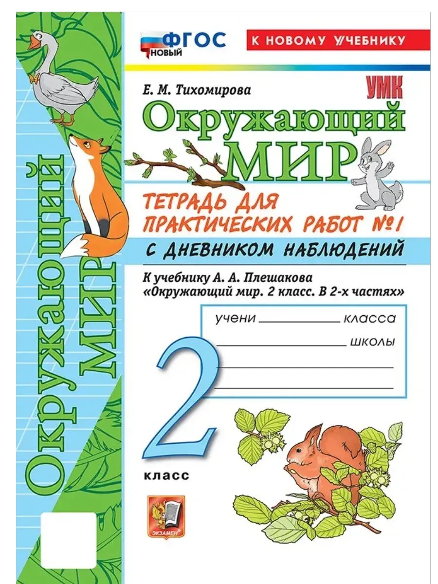 УМКн. ОКР. МИР. ТЕТРАДЬ ДЛЯ ПРАКТ. РАБ. С ДНЕВН. НАБЛ. 2 КЛАСС. ПЛЕШАКОВ. № 1 ФГОС НОВЫЙ (к новому у