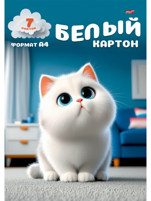 Картон белый 7л А4 Милый котенок — 3 (07-8539) папка, односторон.