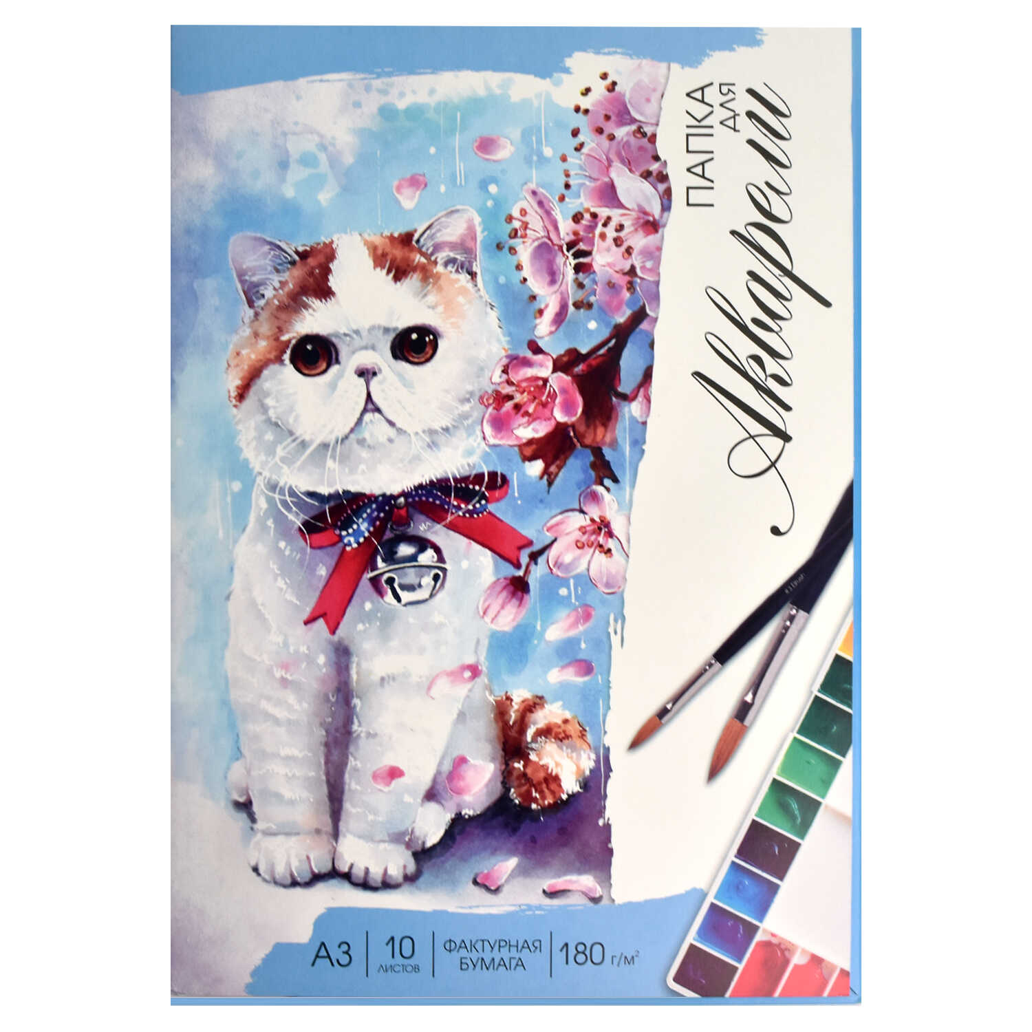 Папка для акварели, формат А3, количество листов 10, папка с клапанами, белая акварельная бумага, 180 г/м²