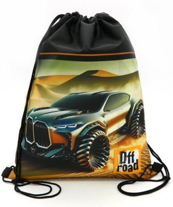 Мешок для обуви DJ-3382 «Внедорожник» черный, полиэстер, с рис, 34х42см, черные завязки (1/10/500) 3820