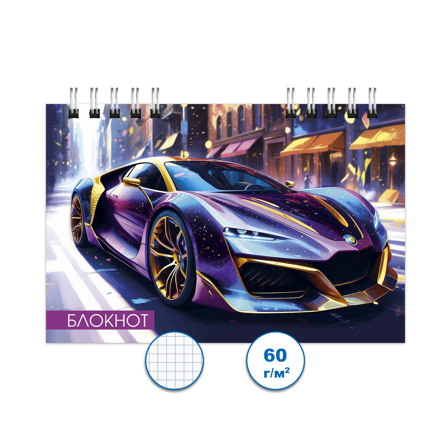 Блокнот А6 120л клетка на гребне Авто 7 6614