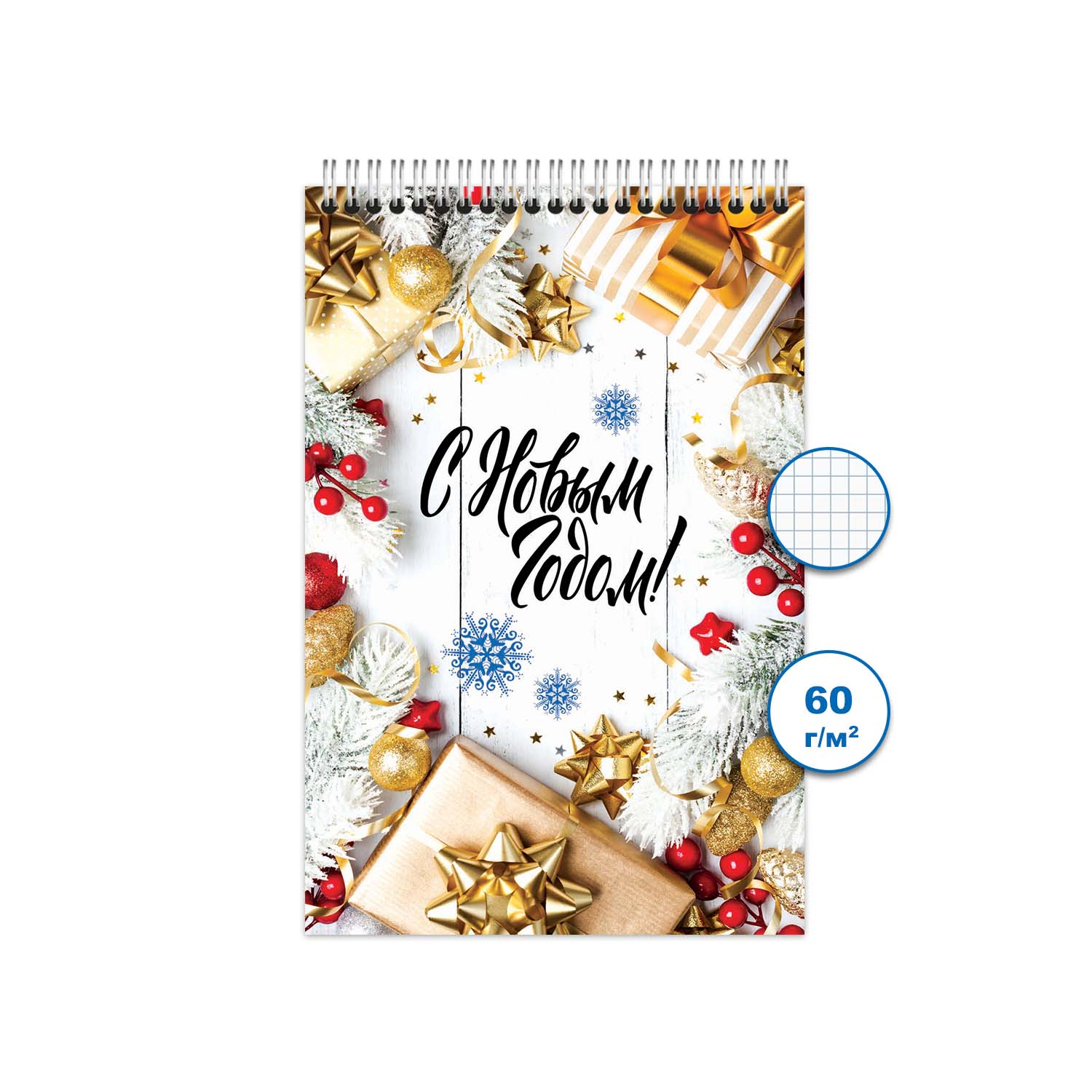 Блокнот А6 48л клетка на гребне Новогодний 5482