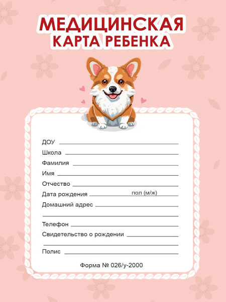 МЕДИЦИНСКАЯ КАРТА на скрепке. КОРГИ (РОЗОВАЯ) А4