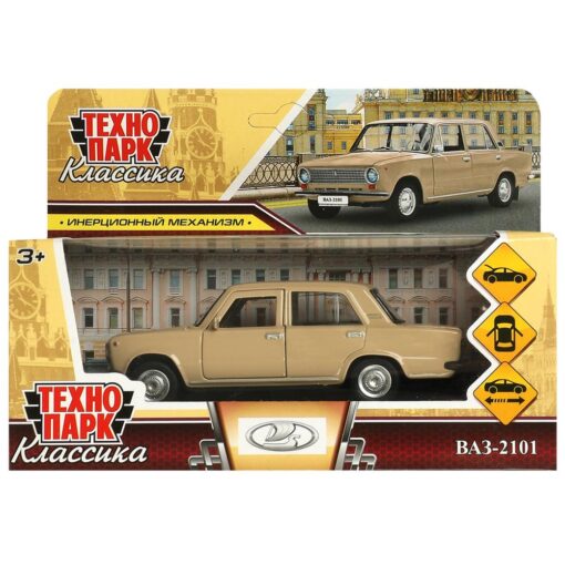 Игрушка Машина Технопарк металл ВАЗ-2101 12 см, двери, багаж, инерция, бежевый 7947