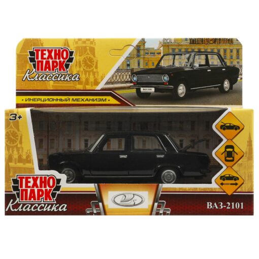 Игрушка Машина Технопарк металл ВАЗ-2101 12 см, двери, багаж, инерция, черный 8104