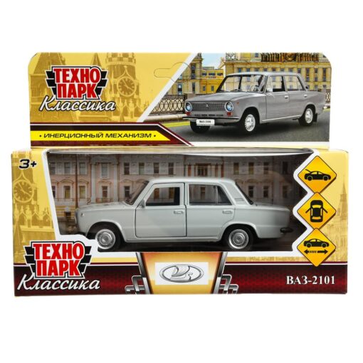Игрушка Машина Технопарк металл ВАЗ-2101 12 см, двери, багаж, инерция, серый 8128