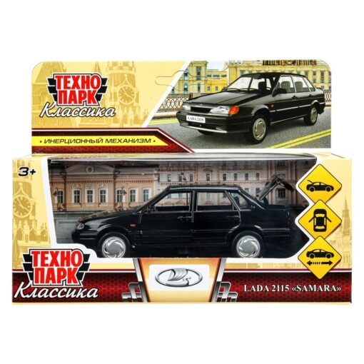Игрушка Машина Технопарк металл ВАЗ-2115 САМАРА 12 см, двери, багаж, инерция, черный 1303