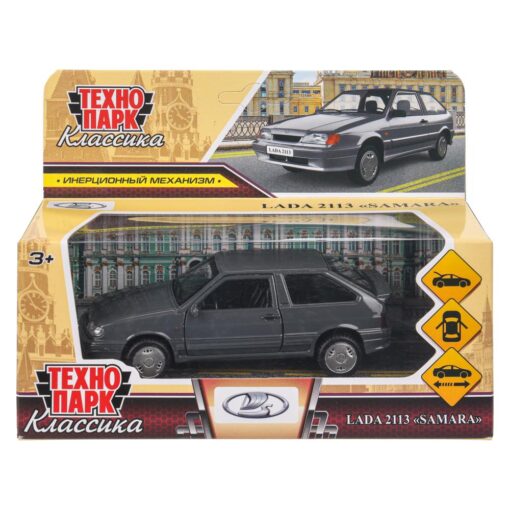 Игрушка Машина Технопарк металл ВАЗ-2113 12 см, двери, багаж, инерция, серый 0946