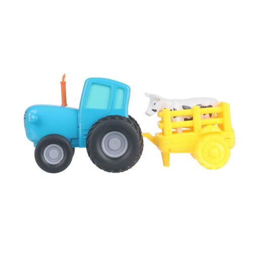 Игрушка Машина Технопарк металл СИНИЙ ТРАКТОР с телегой и коровой 11см, инерция 0694
