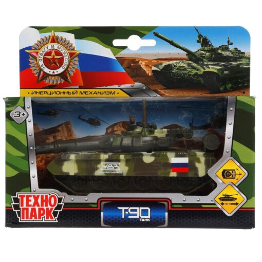 Металлическая инерционная модель «Танк Т-90» ТМ «Технопарк» непременно понравится юному любителю военной техники: