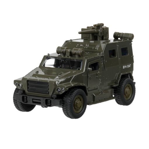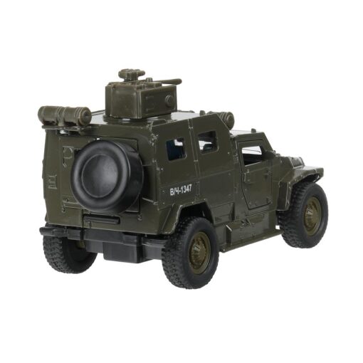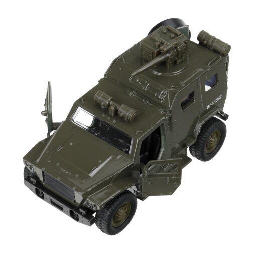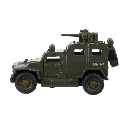 Металлическая модель, выполненная с учётом всех особенностей прототипа, обязательно понравится вашему ребёнку. Благодаря открывающимся дверям, которые делают машинку максимально похожей на настоящую, всегда можно заглянуть к ней в салон, чтобы убедиться — каждая деталь отлично проработана. Реалистичный дизайн данной модели позволит с головой погрузиться в игру, придумывая новые интересные сюжеты. Кроме того, эта игрушка познакомит малыша с видами военной техники.