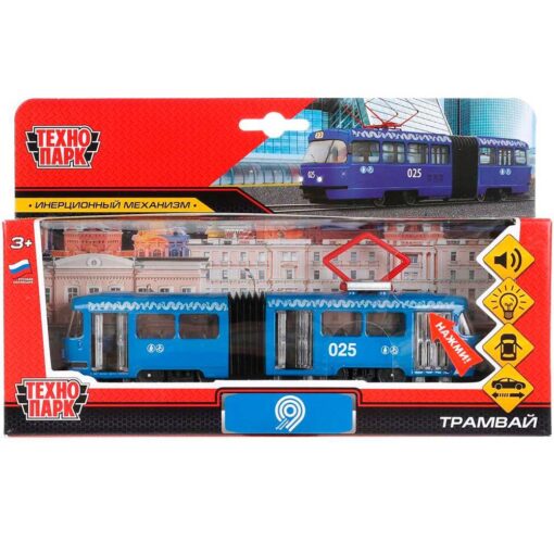 Игрушка Модель Технопарк металл ТРАМВАЙ с гармошкой 19 см, двери, инерция 2706