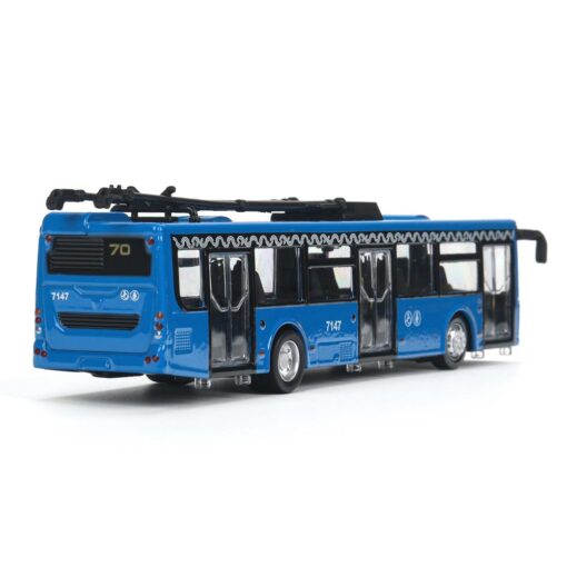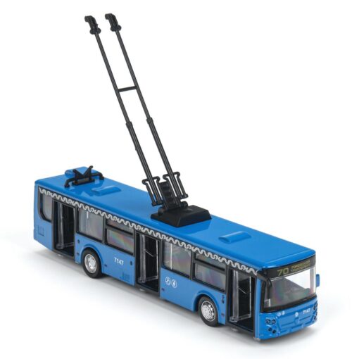 Металлическая модель, выполненная с учётом всех особенностей прототипа, обязательно понравится вашему ребёнку. Благодаря открывающимся дверям, которые делают троллейбус максимально похожим на настоящий, всегда можно заглянуть к нему внутрь, чтобы убедиться — каждая деталь отлично проработана. Реалистичный дизайн данной модели позволит с головой погрузиться в игру, придумывая новые интересные сюжеты. Кроме того, эта игрушка познакомит малыша с видами общественного транспорта.