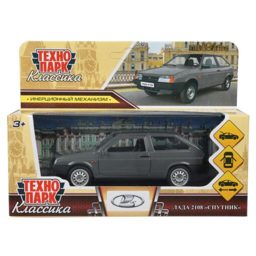Игрушка Машина Технопарк металл LADA-2108 СПУТНИК 12 см, двери, багаж, серый 7698